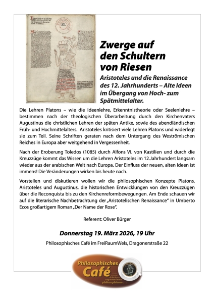 Der Trägerverein FreiRaumWels lädt ein zum Philosophischen Café